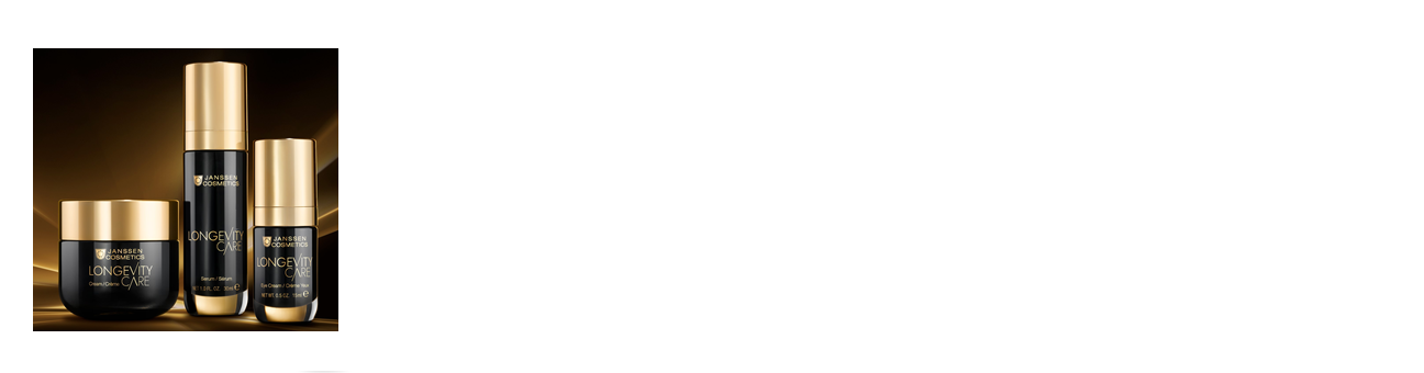 LONGEVITY CARE 最高級エイジングケア ヤンセンコスメティクス最高級グレード ラグジュアリーなアクティブ肌へ ロンジェビティーケアクリーム フェイスクリーム 50mL 肌の構造を整え、輝きを増す24時間ケアクリーム。肌力を高め、首周りや頬の引き締め、ハリ弾力・ツヤのあるラグジュアリー肌へ。 詳細はこちら ロンジェビティーケアセラム 美容液 30mL 内外循環ストレスの影響に着目し、肌バリア力をサポートする美容液。肌の根本的な基盤力を整え、より若々しくハリ・弾力が高まる肌へ。 詳細はこちら ロンジェビティーケアアイクリーム 目元用クリーム 15mL 目元のシワやクマを整える、目元用クリーム。様々なエイジング悩みを包括的にケアし、疲れ知らずの若々しく引き締まった印象の目元へ。 詳細はこちら HOTW TO USE お手入れ方法